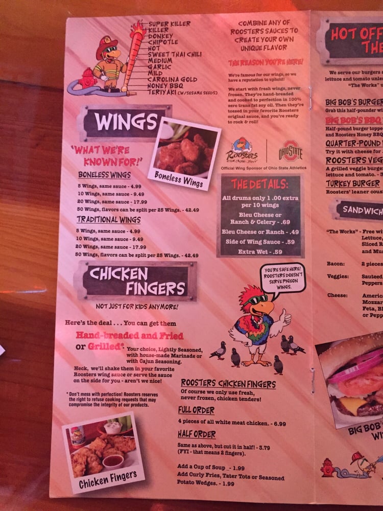 The restaurant's commitment to great service is echoed in customer reviews, highlighting the fast and friendly staff who ensure every visit is satisfying. Moreover, the outdoor seating area, equipped with heating for chilly nights, provides an inviting space to enjoy meals al fresco. With amenities like free Wi-Fi, catering options, and a full bar, Roosters is more than just a dining spot; it’s the ultimate hangout for game days, featuring happy hour specials that make every visit memorable. Join us for lunch or dinner and taste the excitement!
